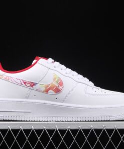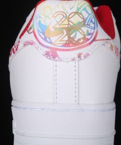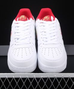 This offering of the “CNY” Air Force 1 features a White leather upper with signature perforated holes on the toe and sides atop a matching White rubber sole. Highlighting the shoe are abstract imagery on the Swoosh and heel showcasing dragons, lanterns, and Chinese characters to communicate its culture references. A Red inner lining and tongue tab completes the design.