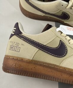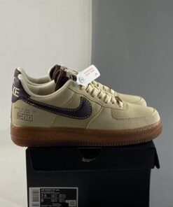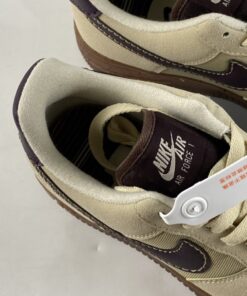 The next up, following an Air Max 97 SE and a Daybreak, comes by way of the Air Force 1, whose palette is a bit more akin to a light roast. As such, the suede and canvas upper is dialed down to a natural tan, the latter fixture just a bit more saturated to better call attention to the change in texture. Overlaid atop that, a tumbled leather Swoosh brandishes in a very dark brown, one much more reminiscent of the stereotypical coffee bean. Heel tabs match as does the tongue’s woven label, while the tooling opts for a slightly see-through finish marked with contrast speckles. Then, elsewhere, the same material is used on the dubrae, further adding to the on-theme branding printed along the insole and the debossed text at the heel that playfully spells “ROASTED BY NIKE. INC.”