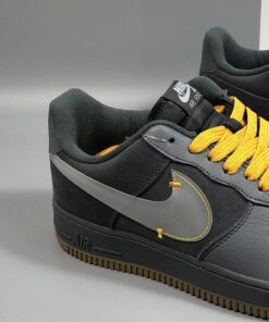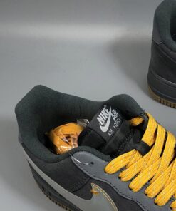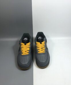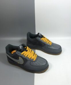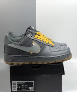 Dressed in a Cool Grey, Pure Platinum, and Dark Grey color scheme. This Nike Air Force 1 Low features a mix of leather and suede on it supper with Yellow contrasting accents on the stitching and flecked laces. Highlighting the shoe are its two different styled Swoosh logos on the sides atop a Gum rubber outsole.