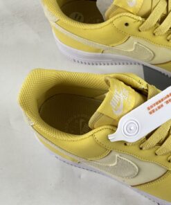 Another Nike Air Force 1 Low with the new cross-stitch branding has surfaced this time in a spring-inspired yellow makeup. Taking a look at this Nike Air Force 1 Low, the sneaker which is celebrating its 40th anniversary in 2022, gets covered in a couple of different shades of yellow throughout the upper which has been constructed out of leather along with canvas detailing on the Swooshes and heel tabs. The standout detail on this Air Force 1 is the embroidered tiny “X” cross-stitching on the heels which make up the “NIKE” branding.