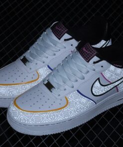 This Nike Air Force 1 Low features a White leather upper with fainted skull prints on the toe area, Swoosh logos, and heel. Adding to the theme are Yellow, Blue, Green, and Pink piping completed with Black heel tabs and Pink skull graphics on the insole.