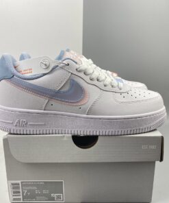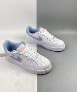 Dressed in a White, Light Armory Blue, and Arctic Punch color scheme. This Nike Air Force 1 Low features a White leather upper with perforations at the toe box and side panels highlighted with translucent overlapped Swooshes in Arctic Punch and Light Armory Blue. Both colors are also used on the tongues and lace dubraes completed with an all-White AF1 rubber sole.