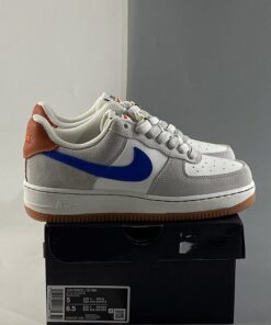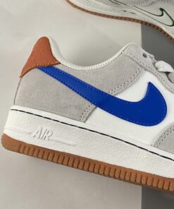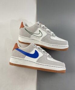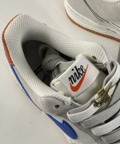 This offering of the Nike Air Force 1 Low features a Sail leather upper with suede overlays, cracked Orange leather in the rear, mesh tongues and lining detailed with a Blue leather lateral Swoosh and Green outlined Swoosh on the medial. The medial is also where June 18, 1971 is printed as well as the year on the insoles as a nod to the exact date the Swoosh was created. Double lacing, Metallic Gold diamond-set Swoosh lace lock atop a White midsole and Gum rubber outsole completes the design.