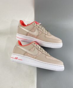 This offering of the Nike Air Force 1 Low comes constructed in a mix of materials featuring monogram-styled weaves on the side panels and toe box, premium leather overlays with silky satin flat ribbon laces and liners. It comes with a Beige base highlighted with Crimson contrasting accents completed with a solid White AF1 rubber sole.