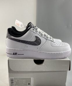 Among some premium variations and some upgrades to sustainability, the silhouette looks to be adding some loud geometric patterns across many of its overlays. Swooshes, which are by far the most visually pronounced in the treatment, dress with black and white shapes of varying size, each etching atop aggressively as the logo loops back to the matching heel tab. Tongue patches also follow suit with the typical “Nike Air” still present, while the constructions adjacent — save for the black lining — stick close to the aforementioned in its near full white composition