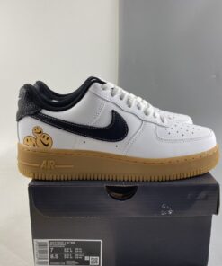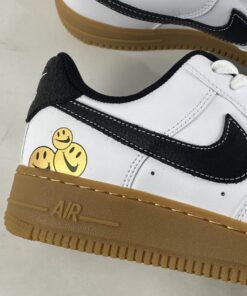 Like the many pairs preceding it, this too features the famed faces — three, in fact — splayed across the lateral heel. These, and laces reading “Go the Extra Smile” appear to be the only callouts to the campaign, with everything else arriving clad in simple finishes Smooth white leathers uppers are fixed with contrasting blacks across the tongues, liners, Swooshes, and heel overlays. The Checks are tacked on with contrast stitching, while muted orange laces provide the same distinction across the forefoot. Lastly, a gum rubber sole unit sits underfoot to complete the design.