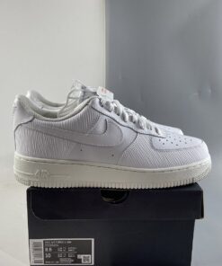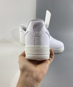 This Nike Air Force 1 comes dressed in a White, Summit White, and Photon Dust color combination. Utilizing an angel mesh on the tongue, which also resembles a leaf and comes with a semi-translucent finish. Next, we have a Greek-like ‘NIKE AIR’ printed and her symbol of victory embroidered on the heels in Metallic Silver. Lastly, the Goddess of Victory is printed on the insoles and the definition of the Nike name.