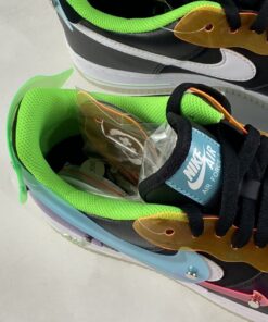 This colorway of the Nike Air Force 1 Low Have A Good Game starts off with a Black base made out of nubuck and grid leather overlays. Decorating the upper are features such as the “Have A Good Game” debossed onto the lateral side, detachable Neon clips, a left tongue label reading “Game On / Team Up” and the global gaming logos displayed on the translucent heel tabs. Add in the Neon Green sockliners, a White midsole and glow-in-the-dark translucent outsoles and you’ve got yourself an Air Force 1 Low packed with details.