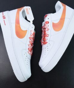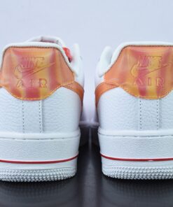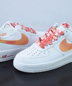 This offering of the Nike Air Force 1 keeps things simple with an all-White tumbled leather upper highlighted with color-shifting Jumbo Swooshes and heels. Red branding and insoles atop a White AF1 rubber sole completes the design.