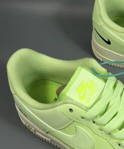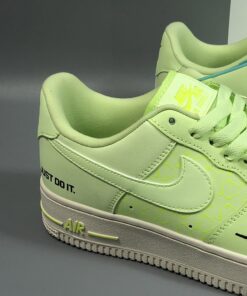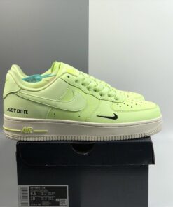 This offering of the Nike Air Force 1 Low features a full Neon-colored upper highlighted with Volt mini Swoosh logos on the toe and side panels. Black embroidered Swoosh on the sides with “Just Do It” on the heels completes the design.