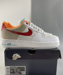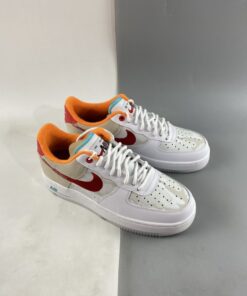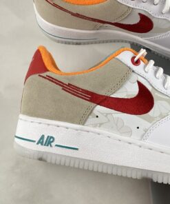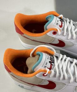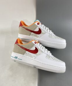 Crafted with a leather and suede base, the newest offering in the “Just Do It” series arrives primarily in white but is contrasted by hues of brown on the heel panel, orange on the sock lining, teal on the tongue lining and a sharp red on the Nike Air heel logo and strip, plus the embroidered panel swoosh that now stretches out into four, thin lines. Additional details include subtle floral-looking patterns on the panel and perforated toebox, a Nike tongue tag, insole branding and branded lace beads. The shoe rests on a white midsole that features a thin teal strip and a transluscent white and brown outsole, while white laces tie the shoe together for a clean finish.