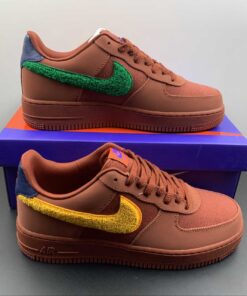 This special iteration of the Nike Air Force 1 Low comes dressed in a tonal earthy, Clay-colored upper that comes constructed out of a canvas textile base, suede overlays and Blue cracked leather heels. Notable details on the sneaker include the Orange and Green chenille Swooshes on the lateral and medial side, respectively. Elsewhere, you will find a Nike-branded tongue tag on the right shoe and a “We Are Familia” patch on the left tongue. A Clay-colored sole unit and FAMILIA branded insoles round out the main features of the sneaker.