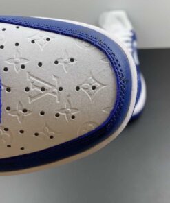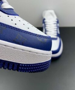 The Nike Air Force 1 Low ‘LV Monogram Blue Off-White’ is a new take on the classic AF1 design. The shoe features a blue leather upper with LV monogram print overlays. The off-white midsole and brown outsole complete the look of the shoe. The ‘LV Monogram’ print is a reference to the iconic Louis Vuitton monogram, which is often seen on luxury handbags and luggage. The print on the shoe adds a touch of luxury to the classic AF1 design. The perforated toe box adds breathability, and the rubber outsole provides traction and durability.