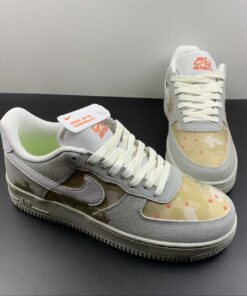 The desert camo seen is a mix of beiges and bright orange specks. This pattern decorates the panels via an elegant woven, jacquard-like style that appears to be new to the Swoosh. Other panels indulge in light gray suedes to maintain the premium look. A matching gray paints the midsole, leaving the swoosh, heel tab, and tongue colored in a stark white. For the finishing touch, the insole completely deviates from the neutral color scheme as it covers itself in neon green
