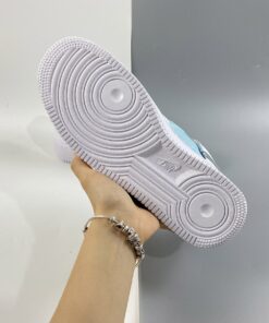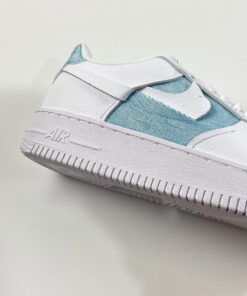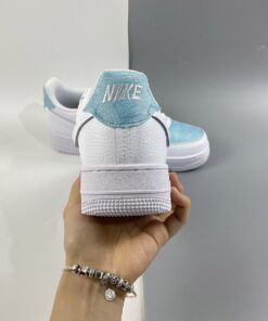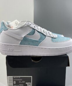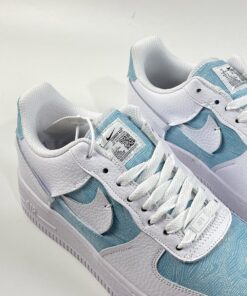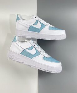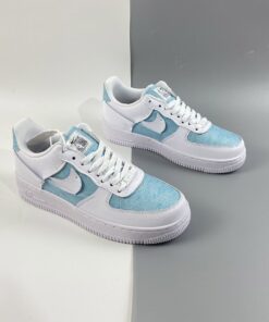 Dressed in a Glacier Blue, White, and Black color scheme. This Nike Air Force 1 Low features textile Light Blue appearing on the toe box, side panel, tongues, and heels with White leather overlays and Swoosh logos. White continues on the laces, lining, and rubber AF1 sole with the models signature tag label displayed on the tongues completes the design.