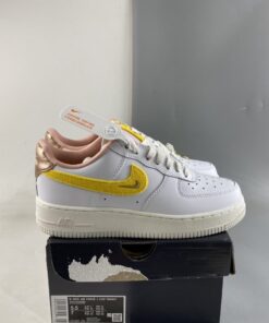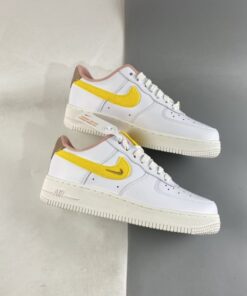 Dressed in a White, Yellow Strike, Phantom, and Pearl White color scheme. This offering of the Nike Air Force 1 Low comes constructed with a leather build, terry cloth tongue labels and Swooshes along with a small charm pendant of a “Mini Swoosh” hanging from the lace dubrae. “Mama” is embroidered on the heels, while the kids pairs read “Mini.” A Sail AF1 rubber sole completes the design.