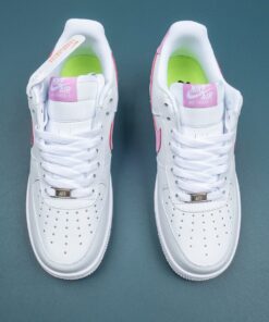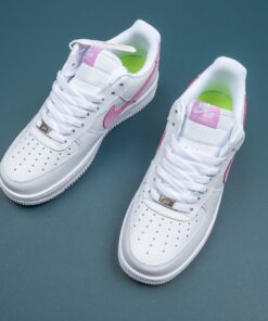 Keeping to the clean and simple white leather look, Nike adds that soft pastel pink tone to the Swoosh logo, heel-tab, and the tongue label for that perfect touch of color. The bright neon insoles officially mark these in the Next Nature category, with metallic lace dubrae completing the look.