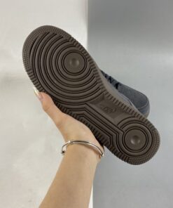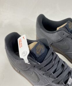The pair quickly sets the scene with an “Off-Noir” grey, giving the suede upper a moody, subtly distressed feel. Adjacent, the tongue, lining, and laces dress a deep black in service of the colorway’s general tone. Then, in contrast to the two neutrals, a “Dark Chocolate” sweetens the palette as it dyes both the tooling as well as the Nike Air branding above.