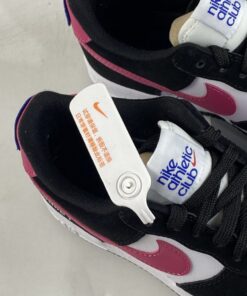 Primarily covered in simple “White” and “Off-Noir,” the upcoming sneakers boast a vibrant “Pink Prime” tone across their profile swooshes and spine area, with the latter placement also donning a patch related to the “Athletic Club” theme. Rich blue contrasts the aforementioned color palette, harkening back to the wellness communities that popped up during the fitness boom of the 1980s; the choice in font also adds to the “walk down memory lane.” Underfoot, Bruce Kilgore’s Air Force 1 maintains its standard sole unit, covered in a simple two-tone style.
