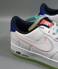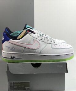 Dubbed “Outside The Lines” this offering of the Air Force 1 Low comes dressed in a White, Racer Blue and Aurora Green color scheme. It sports a White leather upper with Teal, Red, and Volt exposed stitching. Blue on the heel tab with bold “Nike Air” branding, Red tongue labels, atop a Green translucent outsole completes the design.