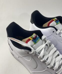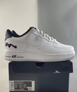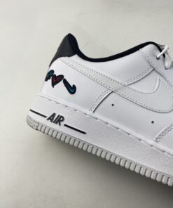 This Nike Air Force 1 Low feature White leather on the upper while matching tumbled leather hits the Swoosh logos. Next, Black appears on the liner, heel, and ‘AIR’ text on the midsole. The collection’s signature graphic print hits the tongue and insoles while the ‘Peace, Love, Swoosh’ graphics land on the lateral and text behind the tongues. Finally, a White midsole and matching rubber outsole finish the look.