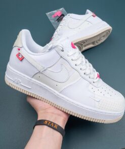 This offering of the Nike Air Force 1 comes in a patchwork-style aesthetic constructed in a mix of materials. It features a White base highlighted with Pink contrasting accents throughout with a hit of Teal on a portion of the medial Swoosh. A White midsole atop a Beige rubber outsole completes the design.