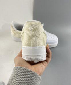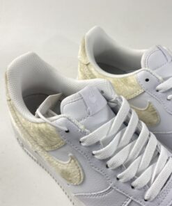 Essentially a triple white release, the pair forks away from a traditional year-round uptown through texture and material. Here, the silhouette’s classic smooth leather finish has been tumbled, but laces, liners, and sole units remain unchanged. All of this takes a back seat to the rear-end, which has been draped in a faux pony hair finish. Swooshes, quarters, and heel overlays are all dressed in the off-white textile, with embroidered branding in the back to match.