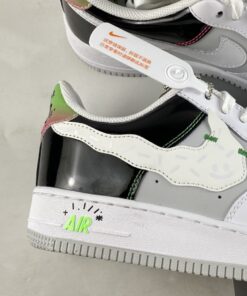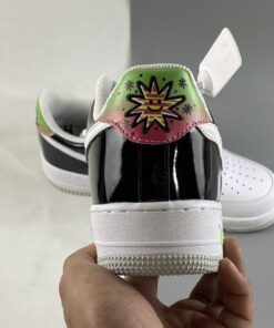 This Nike Air Force 1 Low comes highlighted with a pop art-like theme. Utilizing White leather on the base while Black patent appears on the heel overlay. Highlighting the pair, we have smiley faces and sprinkles on the wavy Swoosh logos and gradient bright shades on the heel tabs with stars. Other details include a special graphic on the insoles, special hangtags, a White midsole, and a matching rubber outsole.