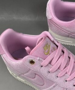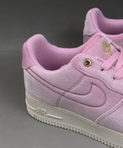 Introducing a dash of luxury into your sneaker collection, the Air Force 1 07 Premium Pink Rise Sail Metallic Gold is made entirely from plush velour. Finely embroidered gold accents feature on the tongue and heel branding, while a debossed Swoosh shoots across the lateral and medials. Down below, the classic Air midsole is present for endless comfort and a smoother stride.