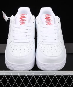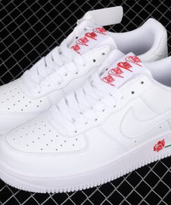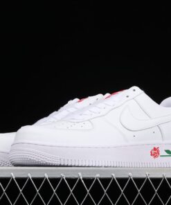 This Nike Air Force 1 comes dressed in a White, University Red, and Pine Green color combination. First, the pair features White smooth leather across the uppers while the same shade adorns the Swoosh and heel branding. Next, we have the traditional perforations on the toe box while Green ‘AIR’ branding lands on the midsole that acts as a stem. Connected to it, we have a Red rose, and the same shade covers the tongue branding. Finally, a White midsole and matching rubber outsole finishes the look.