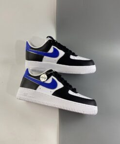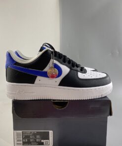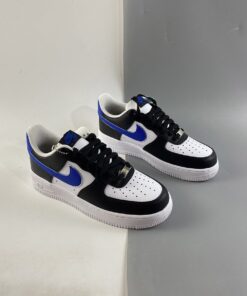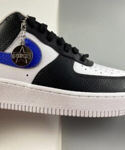 This offering of the Nike Air Force 1 features a White smooth leather base with signature perforations on the toe box and side panels. Black tumbled leather overlays paired with Royal Blue branded tongues, Swooshes, and heels to give off that Fragment vibe. Metallic Silver finishes are used on the Nike Air heel branding and added three-stars completed with a solid White rubber AF1 sole.