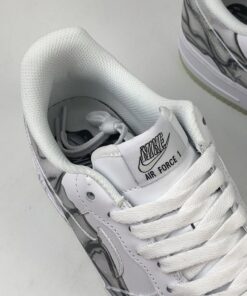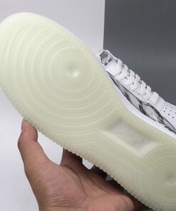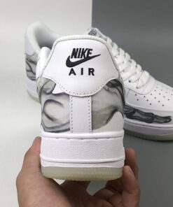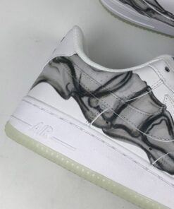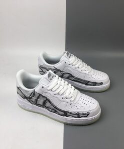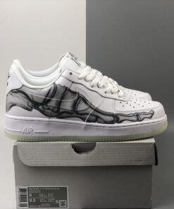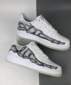 Dressed in a “Triple White” color scheme. This Nike Air Force 1 features a White leather upper that’s covered in a skeleton bone print. Finishing off the design are skeleton-themed tongue labels atop a milky translucent glow-in-the-dark rubber outsole.