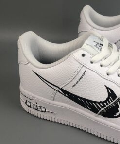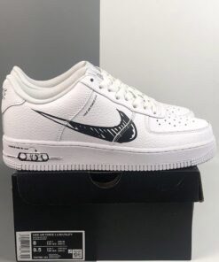 This offering of the Nike Air Force 1 Low features a White tumbled leather upper with matching laces and rubber sole. Highlighting the shoe are Black sketches throughout completed with a matching-colored insole.