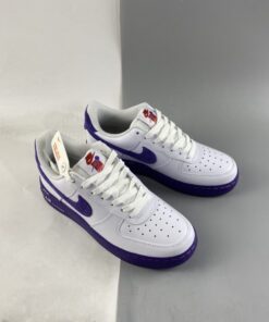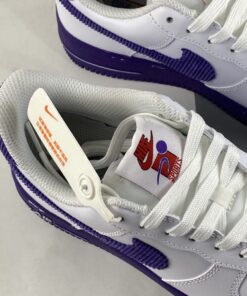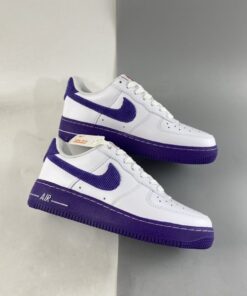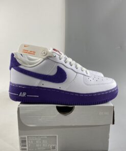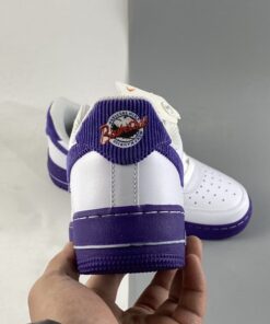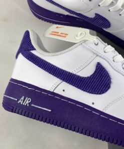 This offering of the Nike Air Force 1 features a White leather upper with Purple corduroy Swoosh and heel overlays and matching colored soles. Other details includes a patch on heels that read “Official Nike Basketball Merchandize”, while the tongue tag comes with the Sports Specialties logo and traditional Nike branding. Finishing touches includes a graphic insole that reads “One Size Fits Most” to complete the sports cap theme.