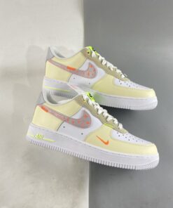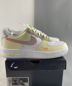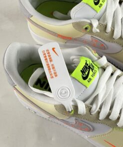 This makeup of the Nike Air Force 1 Low is highlighted by its White leather base that’s then contrasted by the Tan overlays made out of leather and suede. The subtle base is then accented by the Neon hits on areas such as the tongue tag, exposed stitching and branding. Grey hits on the Swoosh and heel tab, while White on the laces and sole round out the main features of the sneaker.