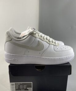 This clean AF1 iteration features a white tumbled leather base complemented with “Light Bone” accents on the eyestay, Swoosh insignias, tongue tags, and heels. Over on the tongue and heel branding, “Royal Blue” is used to further elevate this Nike Air Force 1 “Light Bone” offering. Finally, a signature white rubber outsole helps to round out the final design cues.