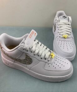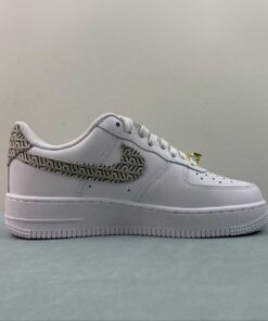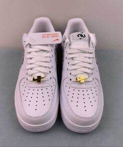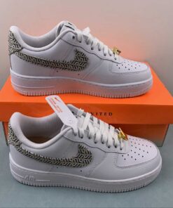 This offering of the Nike Air Force 1 Low features an all-White leather upper with mesh tongues and lining. The all-new repeated graphic print featuring a series of “N’s” and “U’s” in Black and White cover the Swooshes and heels. The “NU” branding also appears on the tongue labels and insoles with the “United in Victory” branding. Metallic Gold Swoosh laces dubraes atop a solid White AF1 rubber sole completes the design.