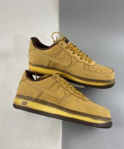 Dressed in a Wheat and Dark Mocha color scheme. This Nike Air Force 1 features a Wheat boot-styled suede upper with Dark Brown inner lining, branded tongue labels, heels and rubber outsole completed with Gum midsoles.