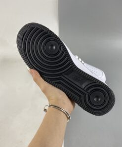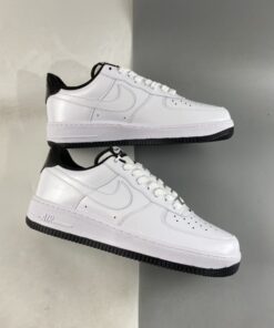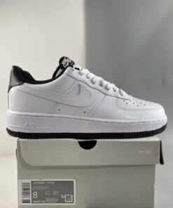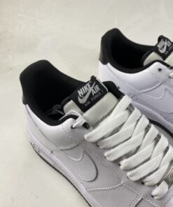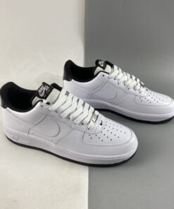 This Nike Air Force 1 features White leather across the upper while Black adorns the tongue labels, liner, heel tabs, and the rubber outsole. Completing the look is more White on the tongue, laces, and midsole.
