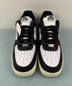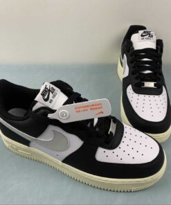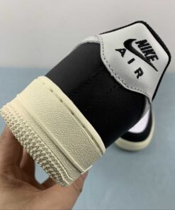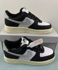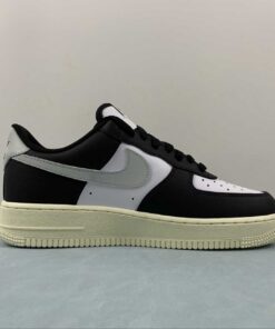 This offering of the Nike Air Force 1 Low comes constructed in a full leather build with perforations for breathability and mesh tongues and lining. It features a White upper with Black overlays, laces and inner lining detailed with Grey Swooshes and heel tabs. Black branding on the tongue labels, heels, and insoles atop a solid Sail AF1 rubber sole completes the design.
