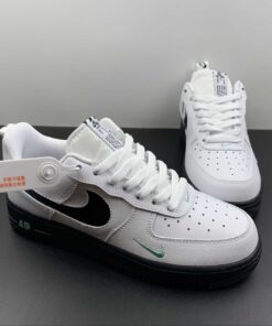 Besides the pops of blue, which only appear across the forefoot’s embroidered Swoosh and the “AIR” across the midsole, the colorway is entirely achromatic. White leathers dress the exterior, matching that of the nylon tongue, mesh lining, and laces, while blacks outfit not only the bottom but also the ballistic mesh Swoosh and adjacent branding.