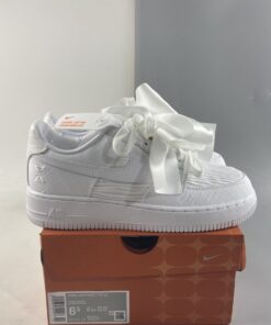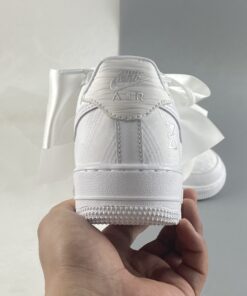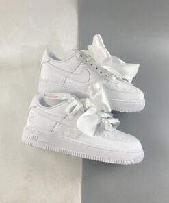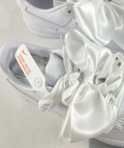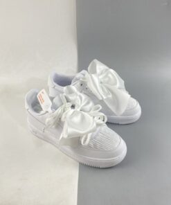 The overt offering is so extra, with multiple sets of bow-tied laces and a removable oversized satin bow sitting across the midfoot as the pair’s championing feature. But the release is much more than this gimmick, with beautiful satin uppers of pure white alternating between texture and pattern between panels. LEather Swooshes and eyestays provide some familiarity, as to does the unadulterated sole unit underfoot. The pair is then completed by premium leather liners and a spare set of laces.