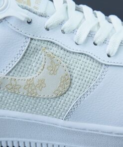 Check out this new upcoming colorway of the Nike Air Force 1 Low. Fairly subtle in design, this new makeup of the Air Force Low starts off with a White tumbled leather upper paired up with smooth leather on the heels and woven side panels. The star of the sneaker is the flower embroidery that take care of the side panel Swooshes. Elsewhere you will find Gold tongue and heel branding, flower detailing on the insoles and White rubber soles.