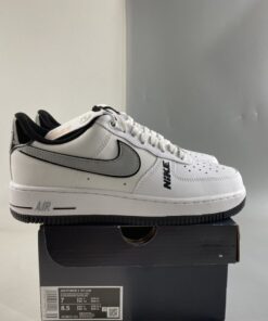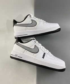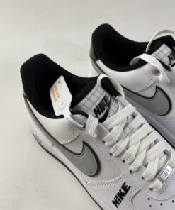 This offering of the Nike Air Force 1 features a clean White leather upper with Grey branding on Swoosh logos and branded insoles. Its tongue label comes with a retro grid textile with blurred branding along with added “NIKE” embroidery on the forefoot. Black detailing and rubber outsole atop a White AF1 midsole completes the design.