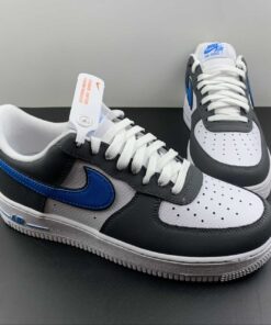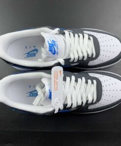 This Nike Air Force 1 Low feature White tumbled leather on the base while Grey nubuck drapes the overlays. Next, Blue lands on the double-layered Swooshes while the same shade hits the ‘AIR’ and Nike Air branding on the tongue, insoles, and heel. Lastly, a White midsole and a matching rubber outsole finish the look.