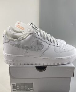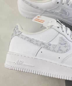 This Nike Air Force 1 Low comes with White throughout the uppers while constructed with tumbled leather. The same shade also lands on the tongue, laces, midsole, and rubber outsole. Highlighting the pair, we have paisley print on the Swoosh logos and heel tab. Finishing the look is Black branding on the tongue and insoles.