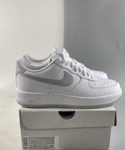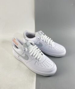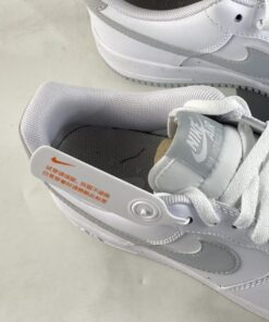 Here, over top a colorless base, the pair adds touches of grey, creating a welcome distraction from the usual “Triple White.” This, however, is a rather subtle departure. The grey used along the Swoosh, tread, and heel tab is actually quite light, barely much different from the white underneath. Most of the upper is dressed in the latter neutral, its forefoot, midfoot, and lace unit seemingly pulled from the aforementioned classic.