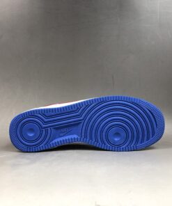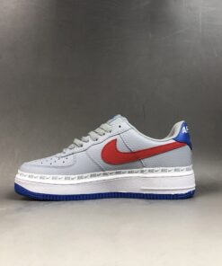 This rendition of the Nike Air Force 1 Low features Grey leather upper with a bold Red Swoosh logos and Blue contrasting accents. Highlighting the shoe is its ribboned branding along the midsole with a new-look branded heel.