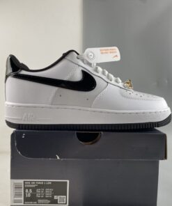the Oregon-based sportswear giant unveiled Bruce Kilgore’s iconic silhouette with world championship belt lace dubraes. Clad in a classic “White” and “Black” ensemble, the newly-surfaced pair features a mix of textures and finishes throughout its oft-imitated upper. Cracked leather takes over toe boxes and mid-foot panels, while surrounding overlays indulge in smooth counterparts akin to the original Air Force 1 Low. Profile swooshes and Achilles’ heel panels introduce a patent leather look into the mix, complimenting the pitch-dark outsole well. “NIKE AIR” text on the tongue label and spine don a shimmering golden arrangement that also lands on the championship belt-shaped lace dubraes found at the vamp of the shoes.