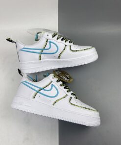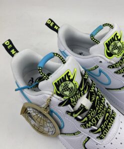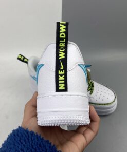 This offering of the Nike Air Force 1 features a White leather base with Blue contrasting accents atop a White rubber AF1 sole. A globe branded tongue with Worldwide text on the lateral forefoot completes the design.
